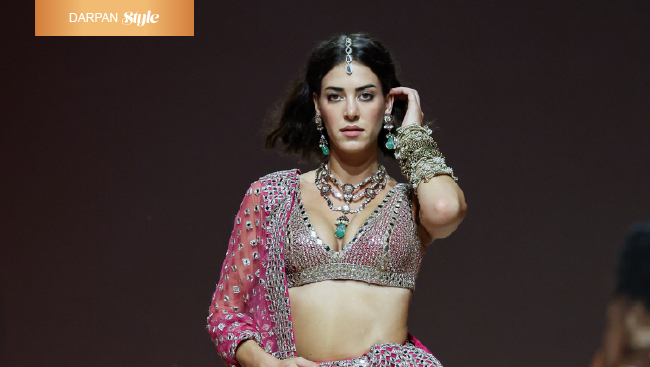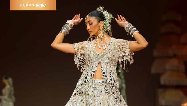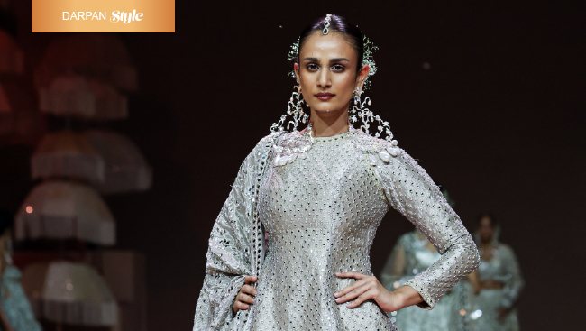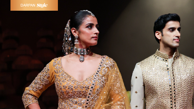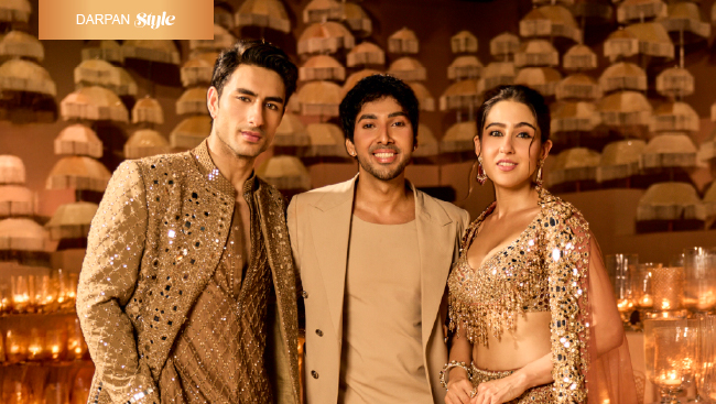 Unveiled beneath an open sky at Abhinav Mishra’s couture show, with Sara Ali Khan and her brother Ibrahim Ali Khan as muses, the collection felt like a dream that left the audience awestruck. Speaking to DARPAN, Abhinav reveals the inspiration for this surreal edit. “For me, The Shrine was born from a sense of nostalgia, a longing to revisit the grandeur of India’s ancient architecture and the emotion that lingers within it. I have always been fascinated by shrines, temples, and palaces that hold centuries of whispered stories within their carved pillars and mirrored walls. With sculptured pillars, mirrored walls, and fading illustrations, I was inspired by the elegance of these timeless structures. I wanted the collection to arise the feeling of a dream, celebrating heritage through softness, light, and reflection,” shares the designer, whose creations are coveted by celebrities like Aditi Rao Hydari, Parineeti Chopra, Sonam Bajwa, Janhvi Kapoor, Karan Johar, Sonam Kapoor, Ananya Panday, Rakul Preet Singh, Shahid Kapoor, Ayushmann Khurrana, among many others.